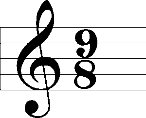 Cuando la subdivisión del pulso de la que hablábamos antes es ternaria, es decir que cada pulso se divide a su vez en tres partes la notación para estos compases es algo distinta, si el compás en cuestión tiene dos pulsos es un 6 por 8    seis corcheas por compás, si tiene 3 pulsos es 9 por 8     nueve corcheas por compás y si tiene cuatro es un compás de 12 por 8    doce corcheas por compás.